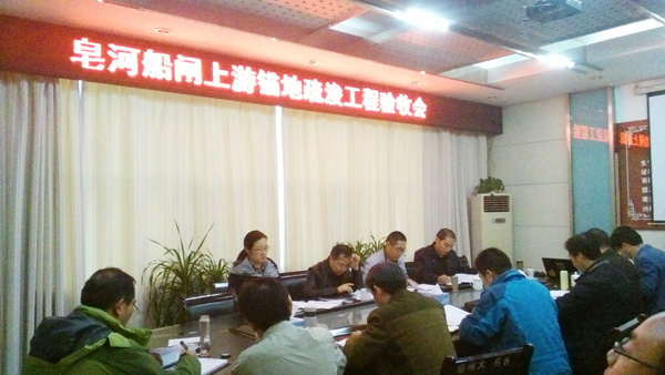 2015年11月12日,京杭运河皂河船闸锚地疏浚工程竣工验收会议在皂河船闸管理所召开。参加会议的有江苏省交通运输厅航道局、苏北航务管理处、皂河船闸管理所、京杭运河邳州航道管理站、及施工、设计、监理单位的相关人员和特邀专家。